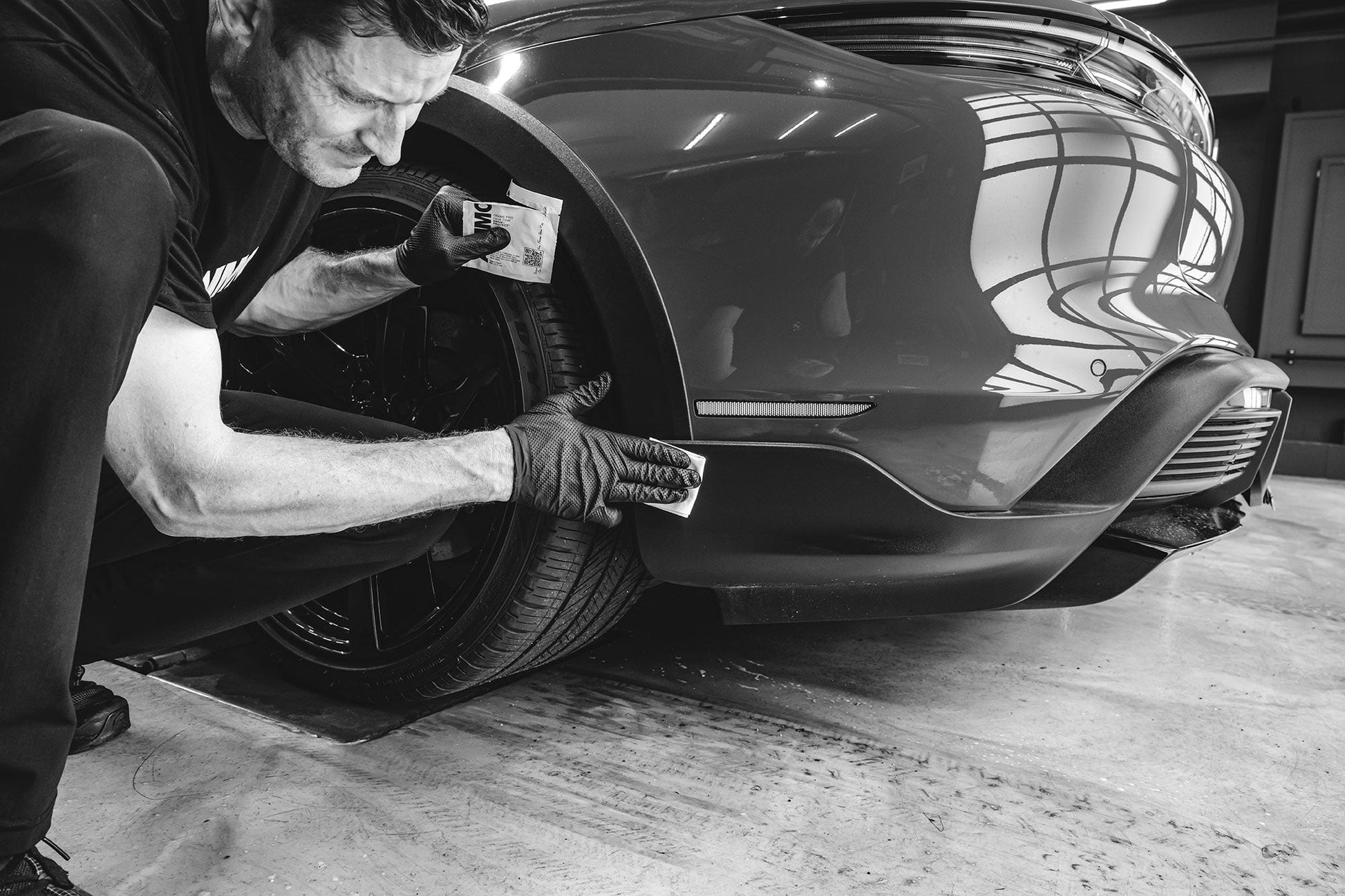 Trim, rubber, and plastic have different rules, and even after a good wash can look faded and stained. Makes your detail look 90%, but AMMO FRAME PRO TRIM COAT can give you that last 10% back. It’s a long-lasting, semi-permanent solution for restoring the factory finish of textured black trim, plastic cladding, and bumpers found on most cars today. AMMO FRAME PRO TRIM COAT is packaged in a convenient dispensable wipe, is easy to apply by hand, and cures quickly within an hour in normal conditions. It’s the best way to "frame" your vehicle’s design. Mask off paint, glass, and other surfaces to avoid accidental contact. Trim must be completely clean, dry, and bare prior to application.