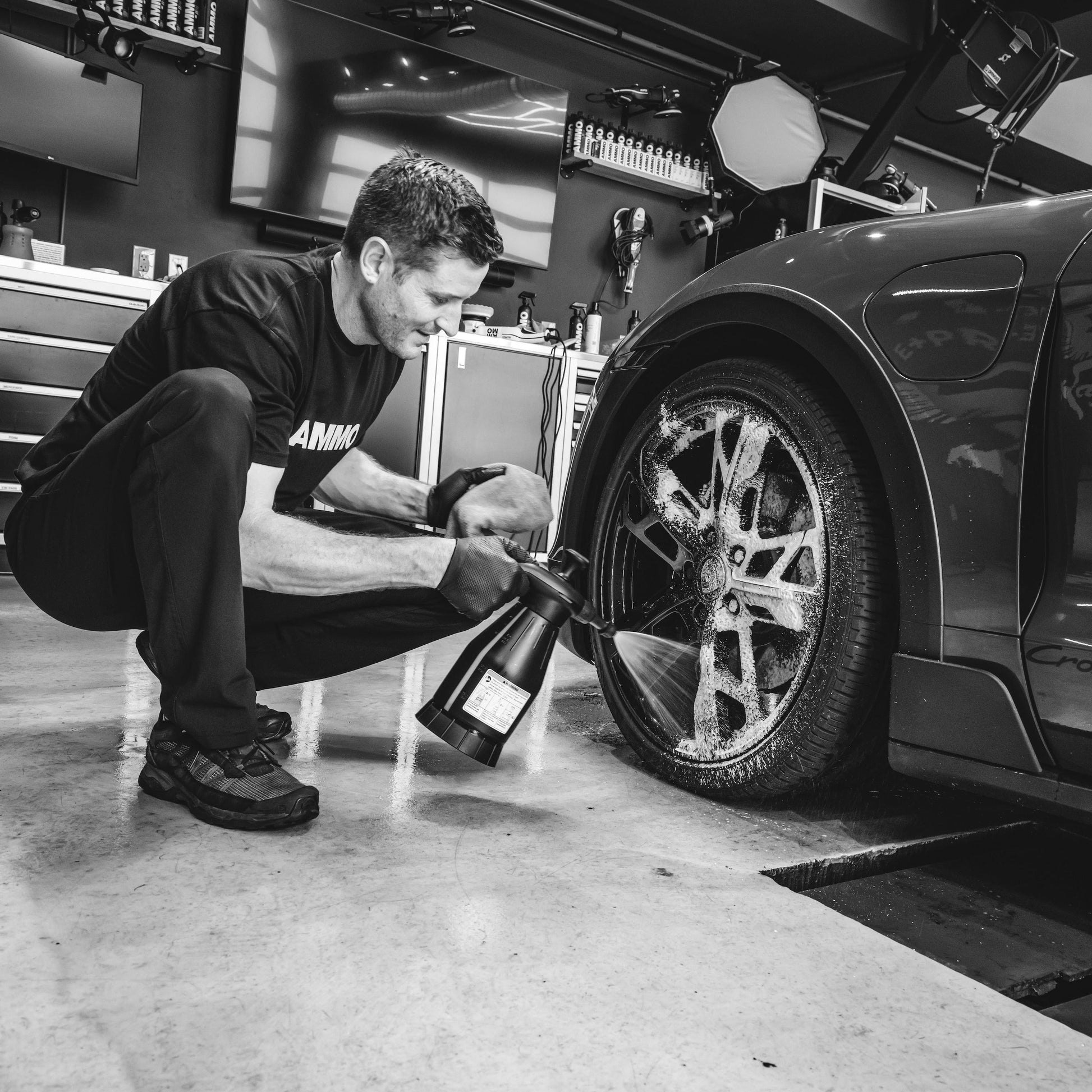 AMMO FROTHe Anti-Salt Lift & Wash is a 20x concentrated (low pH) Humectant that creates a thick shaving cream-like foam to protect the surface of your paint from scratching during a hoseless wash. Formulated with salt-neutralizers for harsh salt-heavy winter environments or coastal regions that cause accelerated corrosion and damage. Perfect for apartment dwellers, water-restricted areas, or dry oceanside climates.