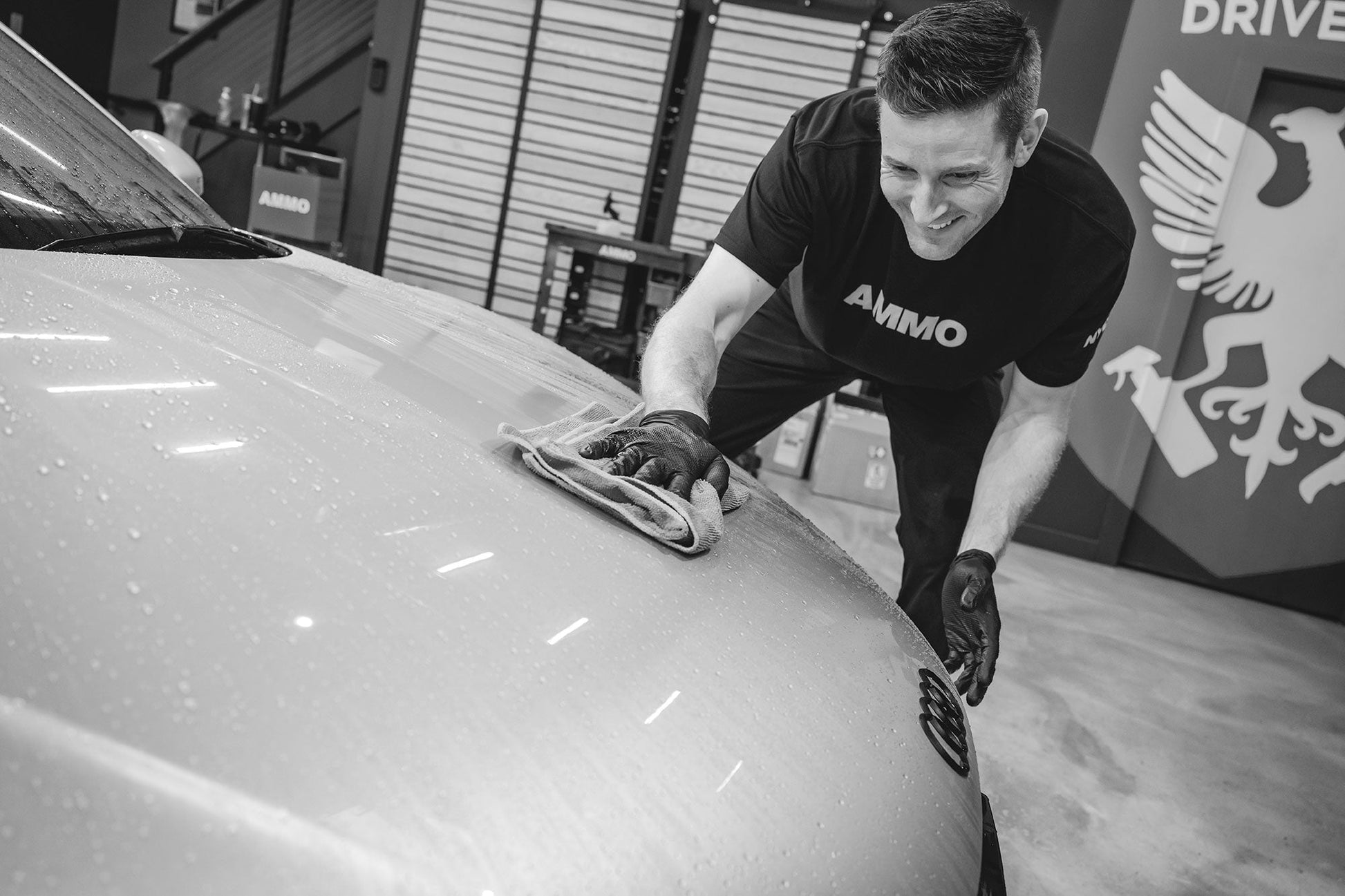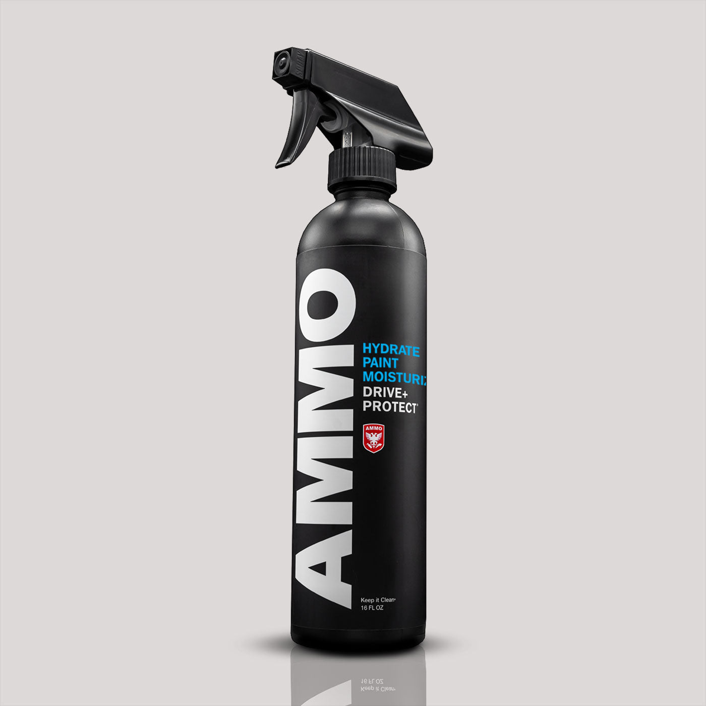 We know you love your car – that’s why you wipe it down so much. But it turns out the drying process can cause many of the fine scratches (we call them “love marks”) on your paint that can mar its brilliant finish. Enter AMMO HYDRATE, a thick liquid that creates a barrier between your microfiber towel and the surface of your paint, leaving behind a thin layer of protection until your next washing session.