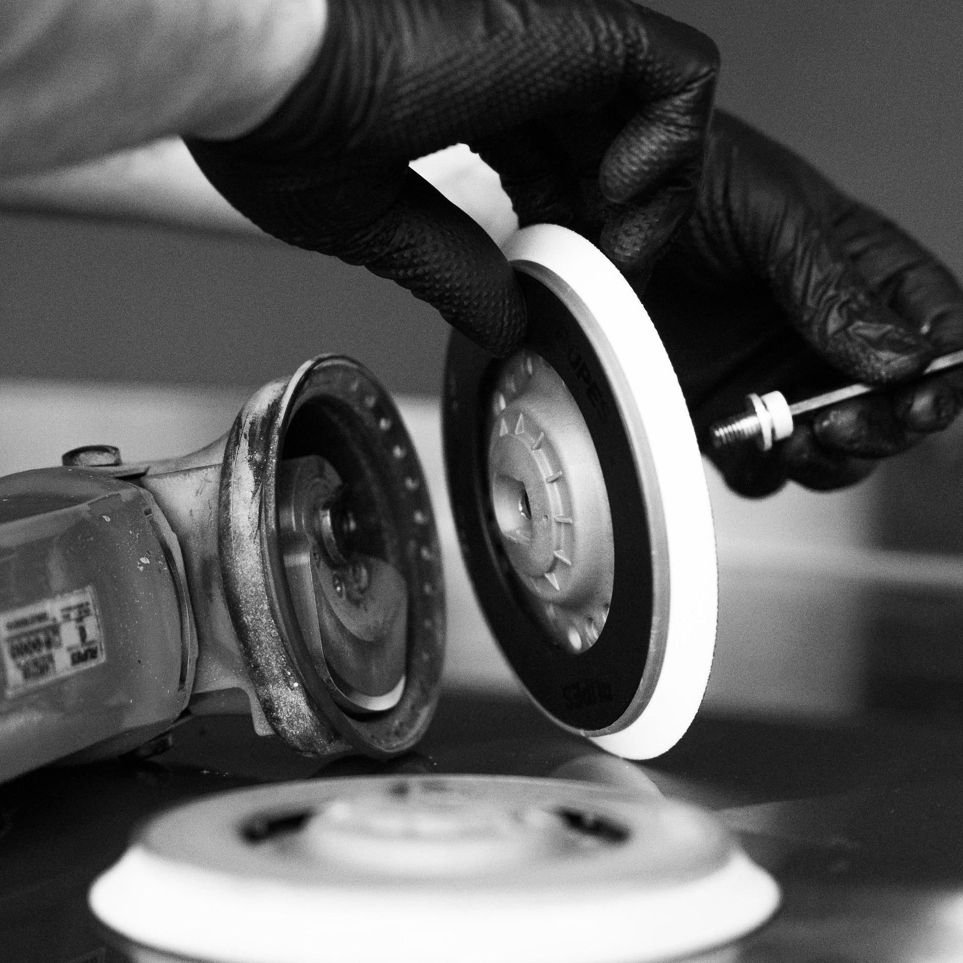 The AMMO Polisher Backing Plate fits our 21mm AMMO-Rupes Polisher with optimized weight, precision, and control for effective polishing. Backing plate is painted black and is compatible with the AMMO 6" Sheer Cutting Pad and 6" Wäfl Finishing Pad.