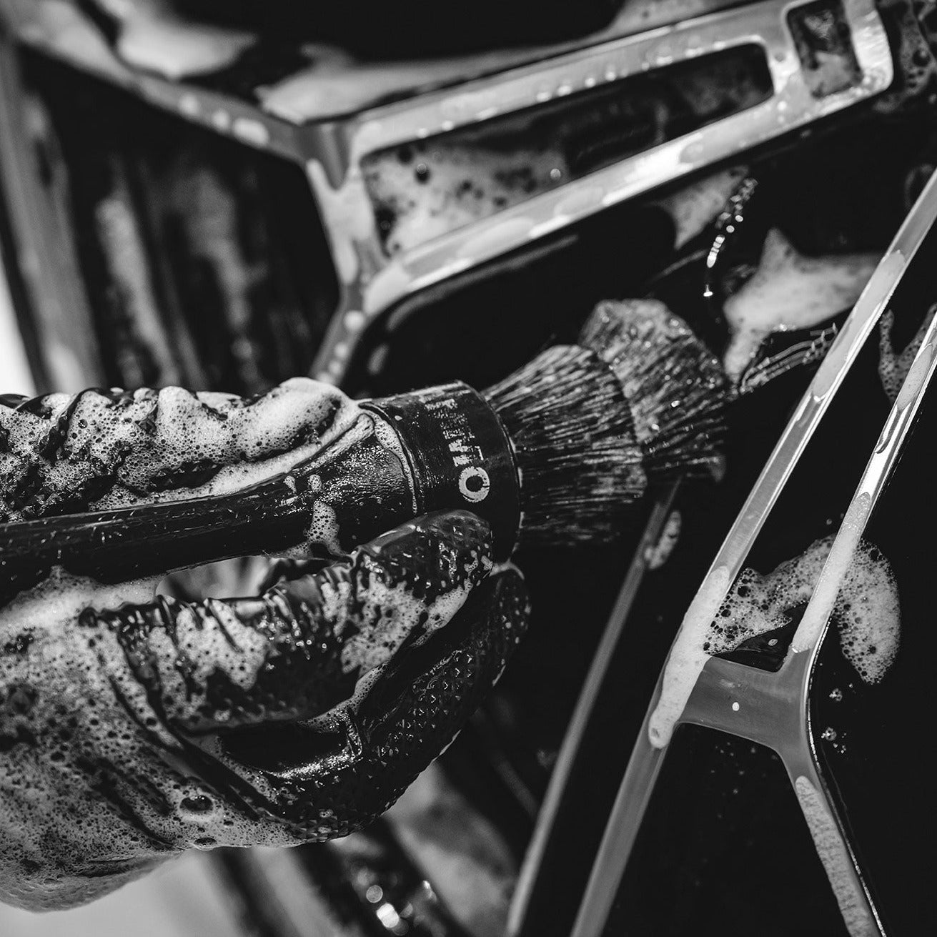 There’s nothing so satisfying in life as rolling on a set of clean wheels. The AMMO TWO-TIER WHEEL BRUSH is here to make it a reality. Two tiers of durable Boar hair bristles allow for more precise cleaning and offer superior wicking ability to deliver Plum Wheel Cleaner or Brute Wheel Soap for better agitation. Featuring a waterproof molded handle, the two-tier brush is specially designed for cleaning rims, lug nuts, brake calipers, rotors, suspension components, and engine bays.